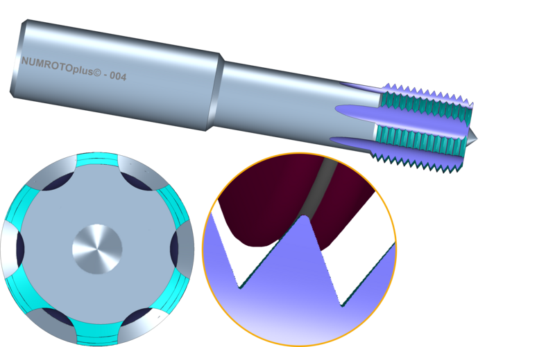 - Gewindeformer mit abgerundeter Gewindespitze und Polygonmodifikation.