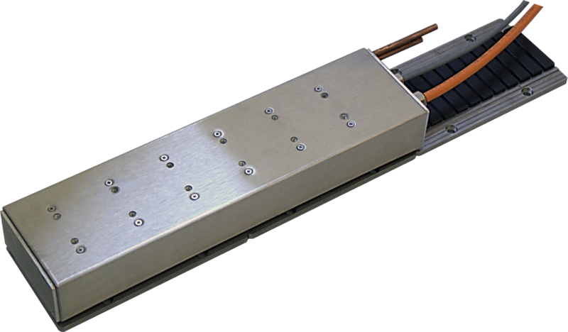 LMX直线电机包括一个带有多个嵌入式稀土磁铁的金属轨道,以及一个由客户提供的导轨支撑的线圈组件。该电机的一个主要特点是,它们被设计为在1毫米的相对较大的气隙中运行,以减少安装公差对性能的影响。在大多数机床应用中,轨道是固定的,线圈组件可以自由移动,但相反的安装安排也是可行的,具有一样的性能属性。