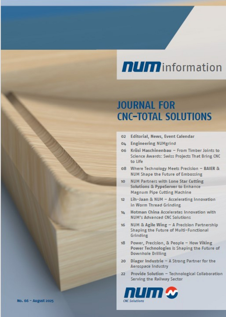 The NUMgear family grows, Software wizard for probing, New software for CNC cutting machines, Using artificial intelligence for fault prevention, Non-circular grinding made easy, Digital Twin, Accelerometer solves vibration problems, new CNC functions, Protecting your know-how, Compensating for geometric errors