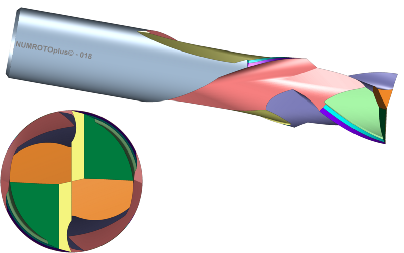 - The up/down milling cutters have 4 cutting edges with helix on the right in the tip and 2 cross mesh cutting edges in the cylinder area.