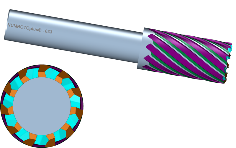 - Right-hand helix 35°, right-hand cutting.