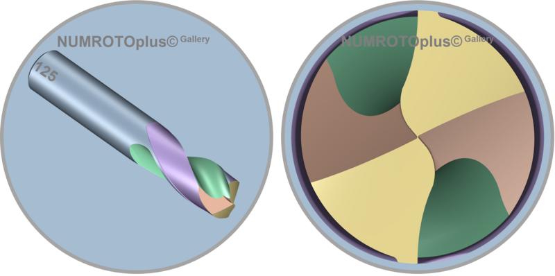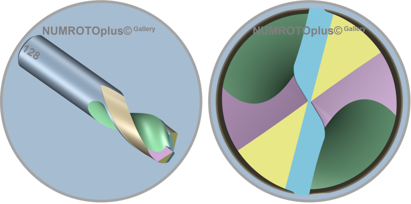 - The gash is ground with a peripheral wheel and the radius on the cross wheel can be freely defined. The machining for the tip is different from the S4 drill tip as the tip has reliefs and not a spiral point.