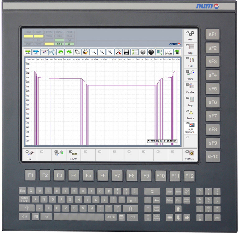 The machine rebuilder performed a comprehensive mechanical and electrical rebuild of the lathe. For the critical CNC element of the refurbishment, it chose to retrofit a high-end solution from NUM, primarily because unique application-specific software developed by NUM’s US facility helped overcome all limitations of the lathe’s existing control system. The software is a tailored version of the NUMspinform control package for spin forming applications. The retrofit also includes a NUM FS151 operator’s panel, a custom HMI programming interface and a customized machine panel.