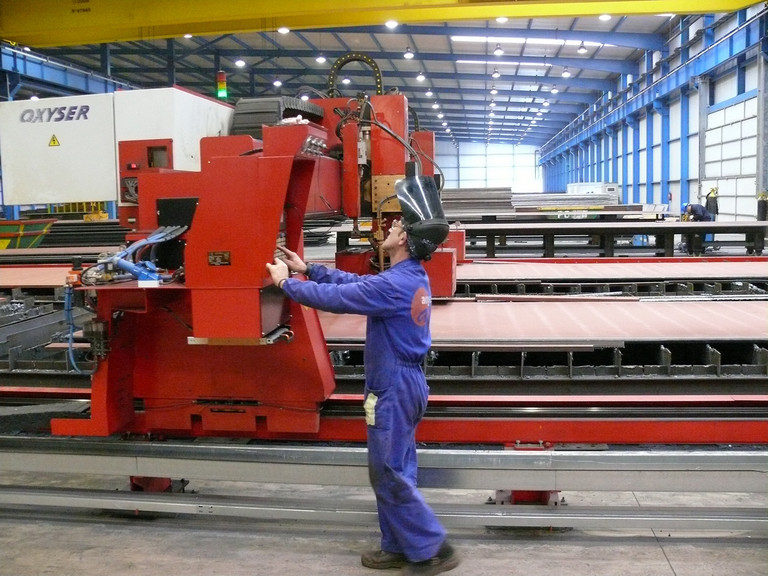 Oxyser developed the new-generation cutting machine to improve productivity for Grupo Ros Casares, a major supplier of structural steelwork in Spain and Europe who provide a broad range of steelwork processing services including complex shape cutting. Although the cutting capability of the machine’s oxy-acetylene torch heads were conceived with the versatility needed to produce bevelled edges for the cladding of wind turbine structures, the machine will cut virtually any complex shape defined by a CAD program.